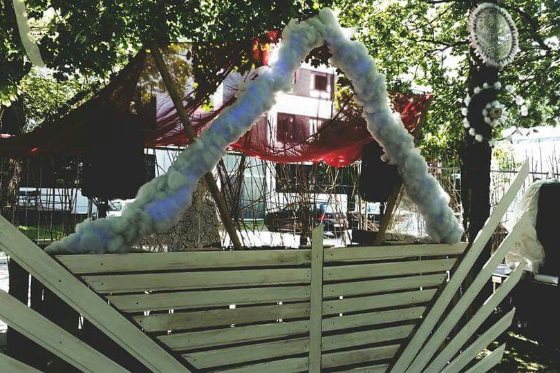 Es hat sich einiges getan. Über die vergangenen Monate wurde gebaut und gebastelt, Leute mit an Bord geholt und Pläne geschmiedet. Die altbekannte Location, die ehemalige Klangwelt neben BAUHAUS, erstrahlt in neuem Glanz. Schon letztes Jahr waren wir überrascht, wie bunte Fähnchen und Lampions auf der kargen Terrasse mit silberner Wellblechverkleidung eine fröhlich-verspielte Wohlfühlatmosphäre schaffen.