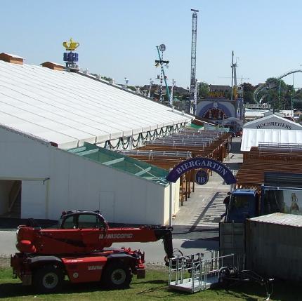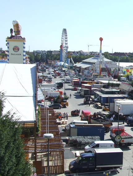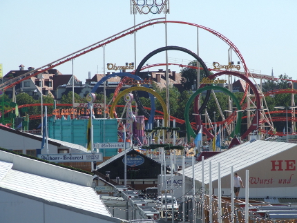 Am Samstag geht die Gaudi wieder los. Das Münchener Oktoberfest wird feierlich mit dem Trachtenumzug und dem “O`zapft is” des Oberbürgermeisters eröffnet. mucbook hat heute einige Impressionen des Aufbaus der Wiesn geschossen. Im Moment ist die Theresienwiese zwar noch eine Baustelle, aber das große Riesenrad dreht schon langsam seine Runden und ein Waggon des Olympia-Loopings durfte eine Proberunde drehen.