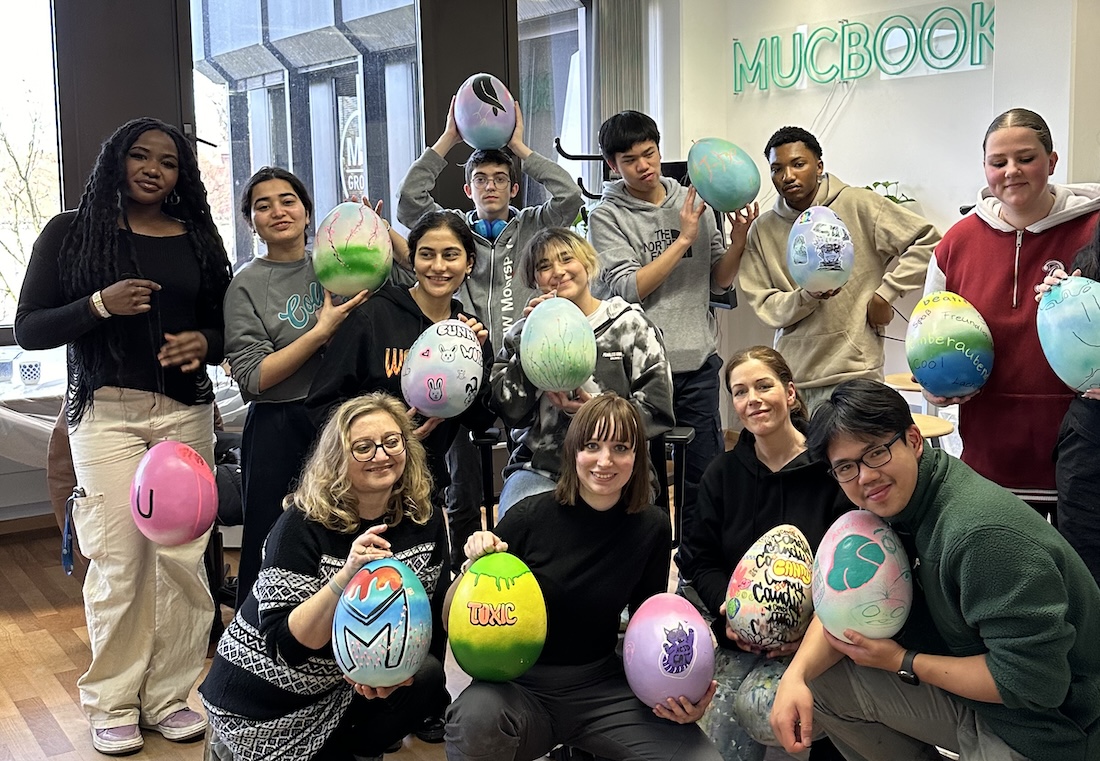 Die jüngste Aktion von ART AVENUE und der gemeinnützigen GmbH ist eine runde Sache: ein Workshop pünktlich zu Ostern. Unter dem Motto „URBAN EASTER EGGS” haben Jugendliche unter der Anleitung der Künstlerin Miriam Ganser am vergangenen Wochenende 30 Zentimeter große Ostereier gestaltet und bemalt. Mit Markern, Stickern und Sprays entwarfen die Jugendlichen eine andere Art von Ostereiern, inspiriert durch urbane Streetart. Eines für sich –  und eines für den Osterbaum im Innenhof, die bis Ostern dort zu sehen ist.