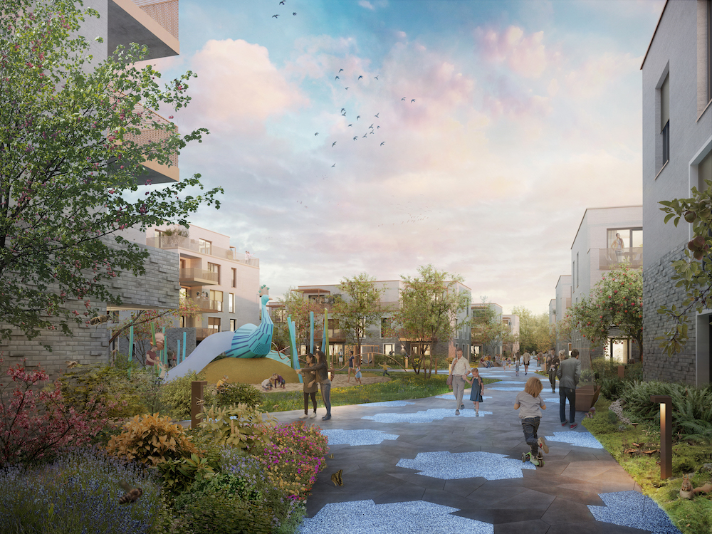 Im Projekts „FVTVRIA“ entsteht ein nachhaltiges Zukunftsquartier für Mensch und Natur, inspiriert vom Innovationsgeist des Wissensstandorts Garching. © Visualisierung BHB Unternehmensgruppe