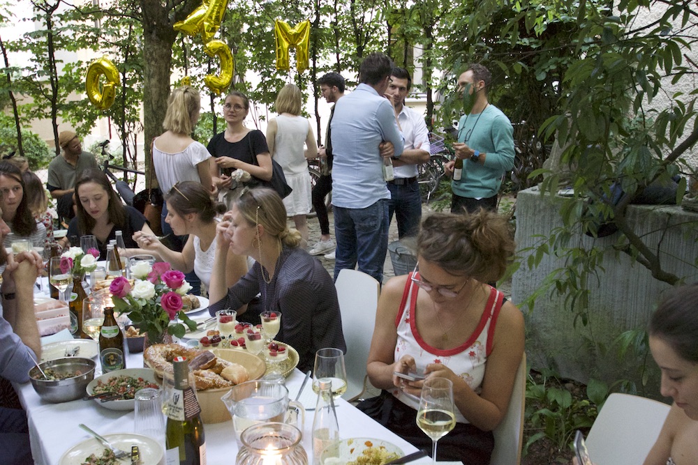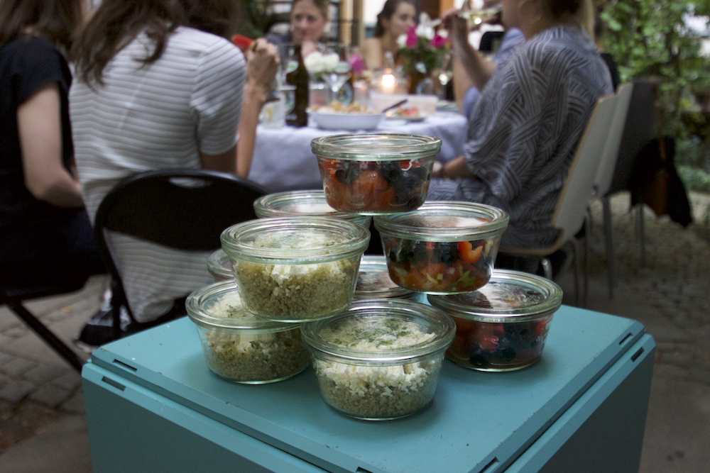 Um die Plattform (und unser Viertel) besser kennenzulernen, haben wir Anfang der Woche ein Shared Dinner im schönen Hinterhof unseres Mucbook Office im Westend veranstaltet. Das Prinzip ist klar: Jeder bereitet zuhause etwas zu Essen vor, am Ende wird alles geteilt. Wir haben das Glück, dass zu unseren Freunden auch Culinarium Bavaricum und ManuTeeFaktur gehören, die Wein und erfrischende Getränke beigesteuert haben. Nicht zu vergessen natürlich der Mango-Chia-Pudding und die leckeren Salate von Basti & Lorenz, schick und nachhaltig im Mehrwegglas.