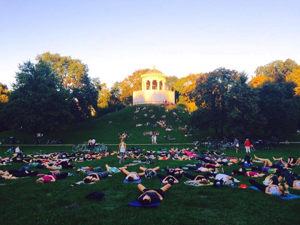 Terry: Die Idee ist, Yoga aus den Studios in die ganze Stadt zu bringen, um möglichst vielen Menschen das Yoga-Gefühl zugänglich zu machen. Wir hatten es schon öfter, dass jemand lieber zu einer unserer Stunden im Park kommt, als in ein Studio zu gehen.Wir möchten den Münchnern die Möglichkeit geben, eine einzigartige Yogastunde an einem Ort zu erleben, der mit Yoga eigentlich gar nichts zu tun hat. Das sorgt für ganz besondere Momente. Jeder Ort hat seine ganz eigene Atmosphäre, und durch diese unterschiedlichen Energien und Einflüsse gelingt es, sich selbst und seine Umgebung neu wahrzunehmen – ganz ungezwungen und mit viel Spaß.