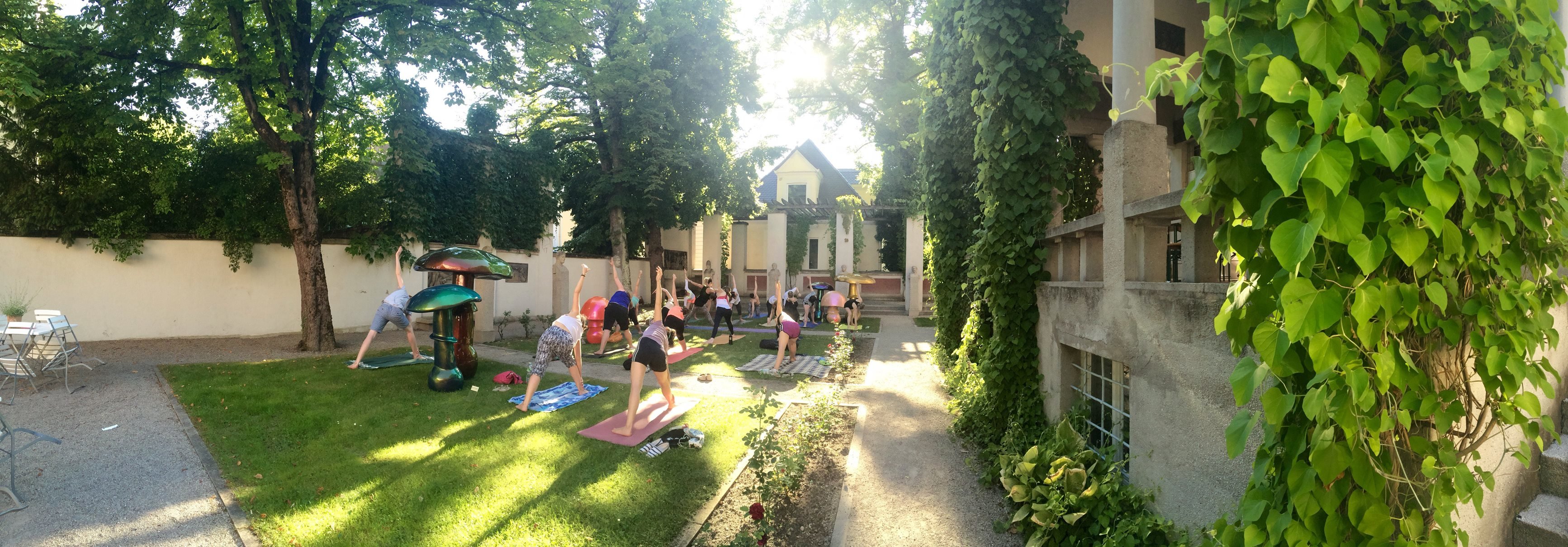 Terry: Getreu dem Motto „Yoga everywhere“ sind wir ständig auf der Suche nach neuen Locations. Wir waren schon in historischen Museen und hippen Galerien, auf Dachterrassen und in Bars und natürlich in den schönsten Ecken der vielen Parks die es in München gibt.Besonders abgefahren war eine Stunde in der sogenannten „Little Chapel“ im Hard Rock Café, die tatsächlich aussieht wie eine kleine Kapelle aus Las Vegas.