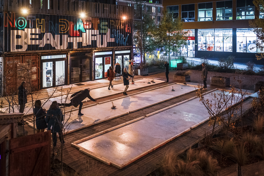 Endlich kann man sich wieder zum Eisstockschießen treffen! Seit dem 9. November hat die Eisstockbahn im Container Collective wieder geöffnet. Dort könnt ihr gemeinsam mit eurem Team oder Freund*innen unter freiem Himmel euer Können auf der Bahn beweisen und dabei ganz gemütlich den ein oder anderen Bio-Glühwein oder Punsch trinken, eine Kleinigkeit essen und eine gute Zeit gemeinsam haben. Der Sport, der eigentlich auf zugefrorenen Seen gespielt wird, macht eine Menge Spaß und ist im Alpenraum im Winter weit verbreitet.