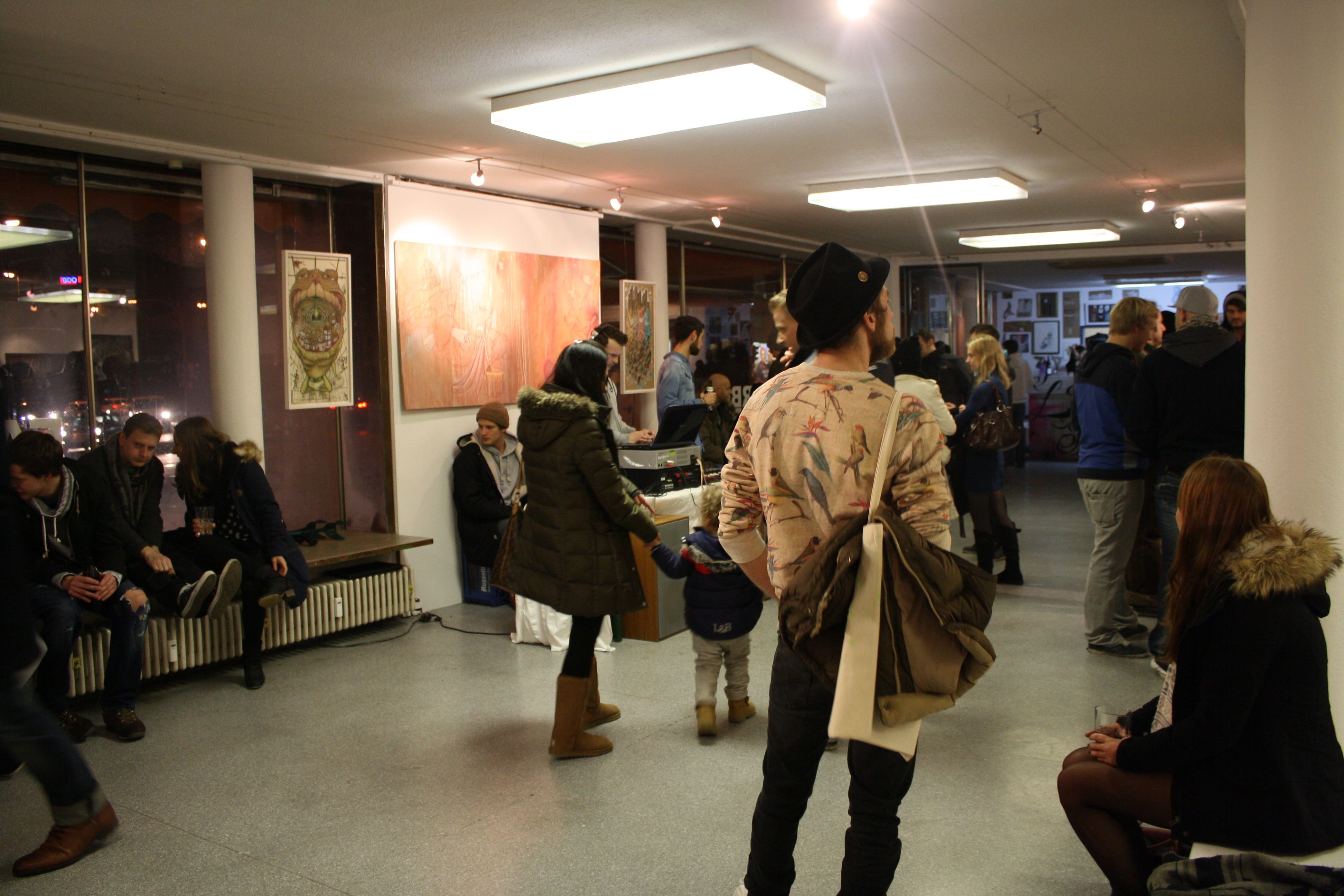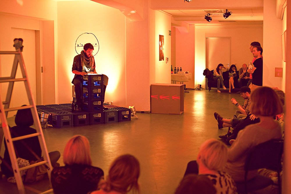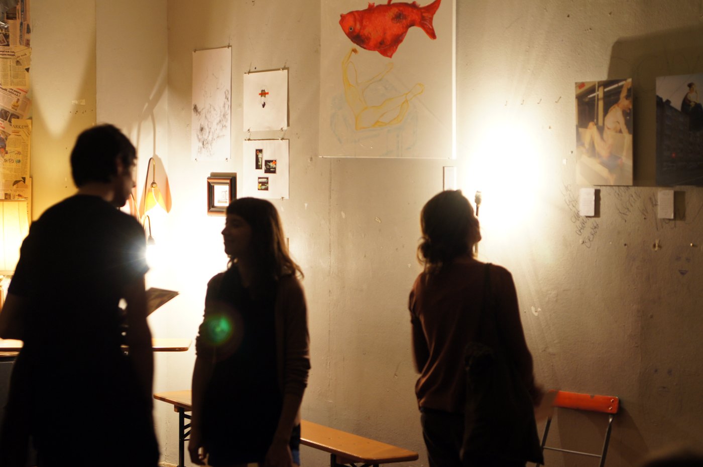 Eine Lesung während einer Vernissage im Linoleum-Club