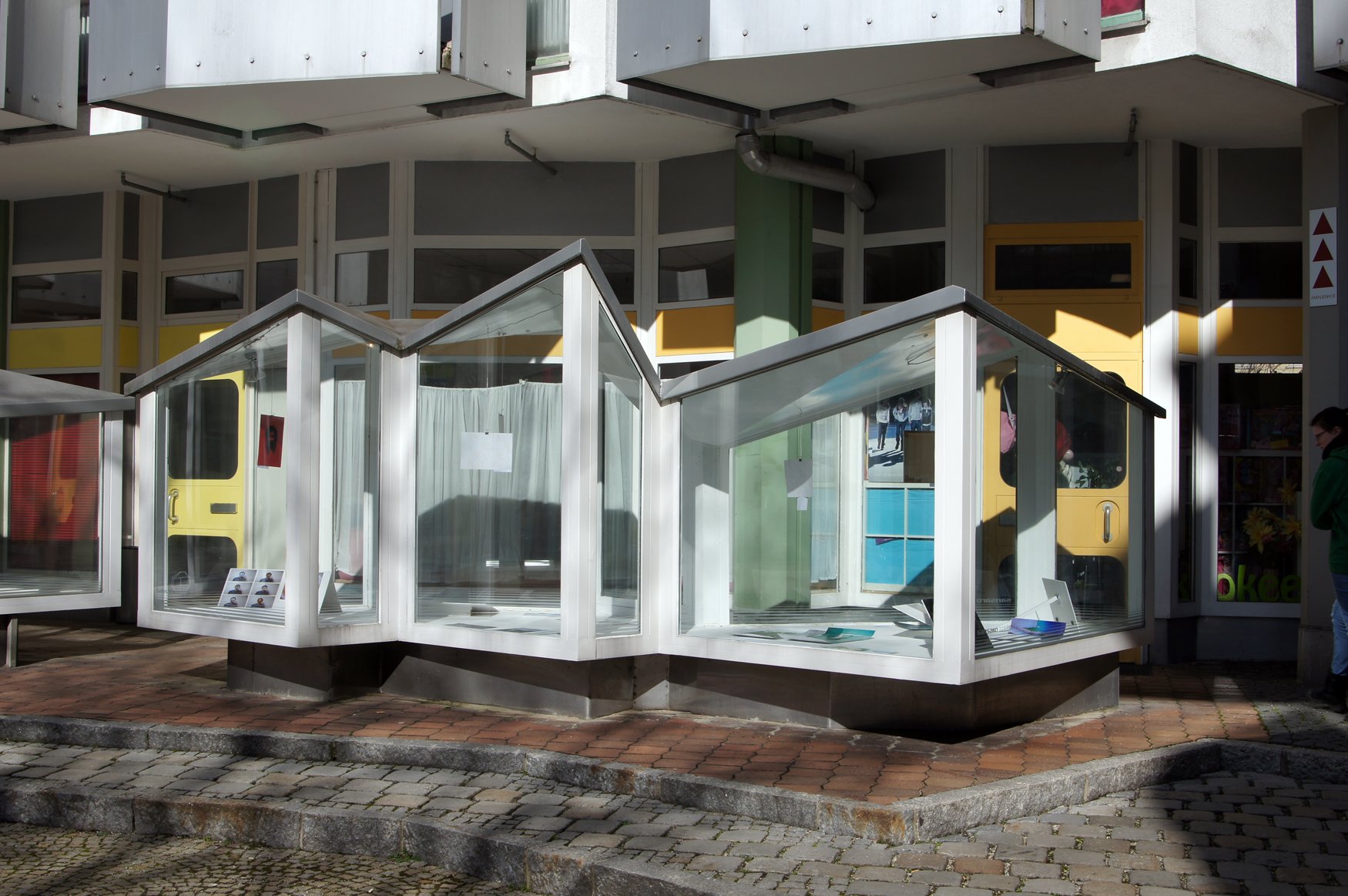 Eigentlich ist es nicht nur eine Box, vielmehr handelt es sich um meherere, in der Passage verteile Boxen. Die Herausvorderung besteht darin, einen dreidimensionalen Raum zu gestalten