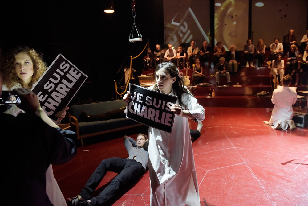Mit Wut hat sich die Nobelpreisträgerin Elfriede Jelinek den Anschlägen auf Charlie Hebdo vom Januar 2015 gewidmet – in einer Orgie aus Sprechdurchfall, Shitstorm und Kunstkacke hat Nicholas Stemann nun die Uraufführung in den Münchner Kammerspielen inszeniert.
