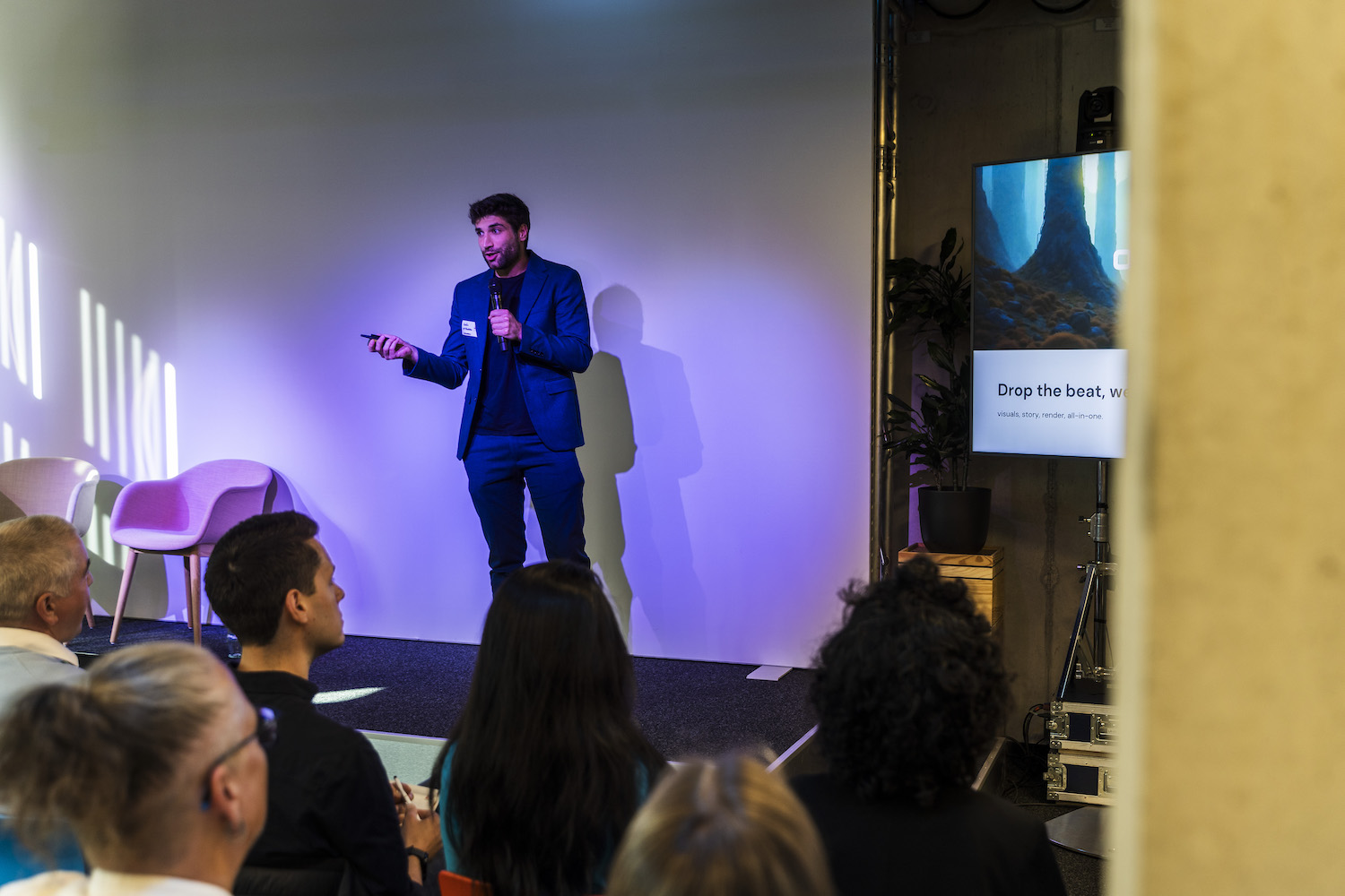 Passend zu dem Aufruf der Expert:innen, die KI zu nutzen, um mit der eigenen Kreativität wirklich Einzigartiges zu schaffen, präsentieren im Anschluss an die Panels sechs Startups ihre KI-Produkte. Im Rahmen des ersten GEMA Startup-Pitsches „Shaping the Future of Music with AI“ wurden diese Projekte aus 17 Einreichungen ausgewählt, weil sie prototypisch zeigen, wie KI die Musikbranche unterstützen kann – ganz konkret und pragmatisch.